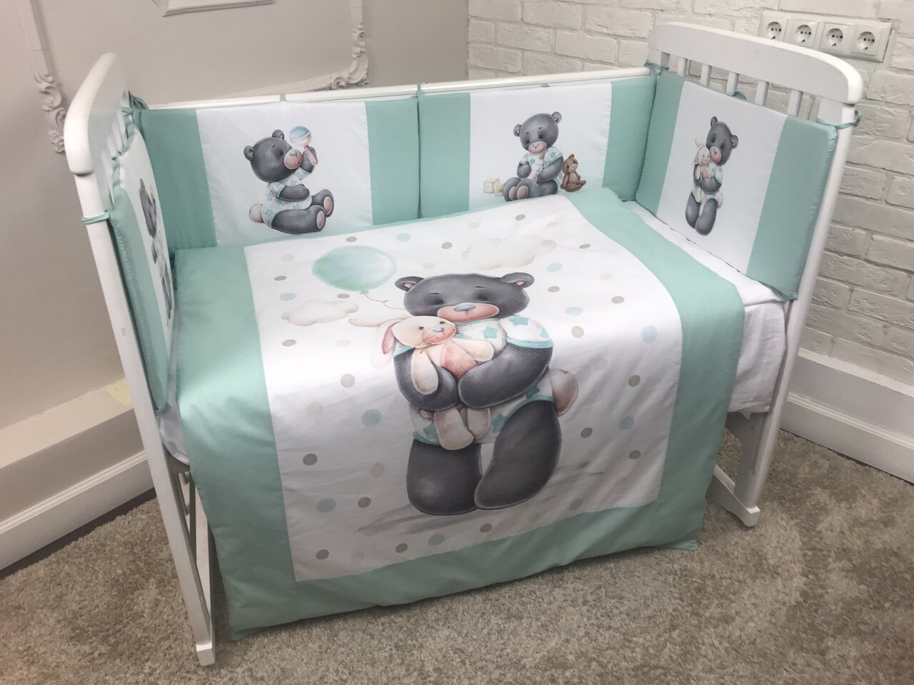 Милый Мишка LuBaby Комплект в кроватку LuBaby Милый Мишка 6 предметов Полисатин Мятный интересное: