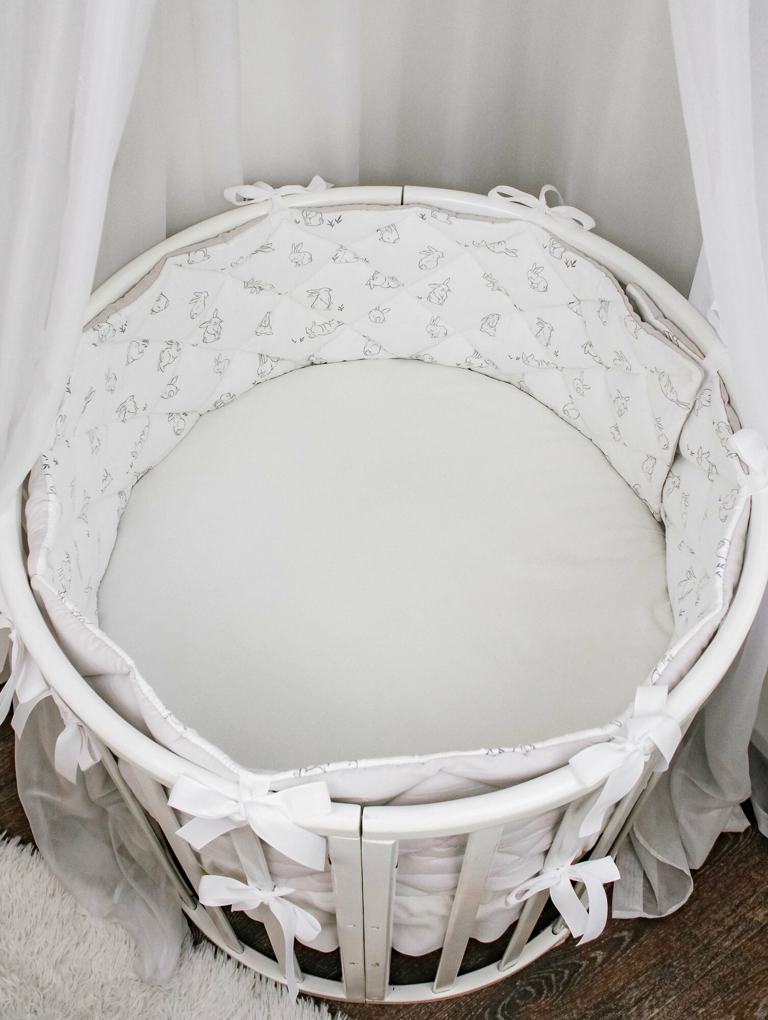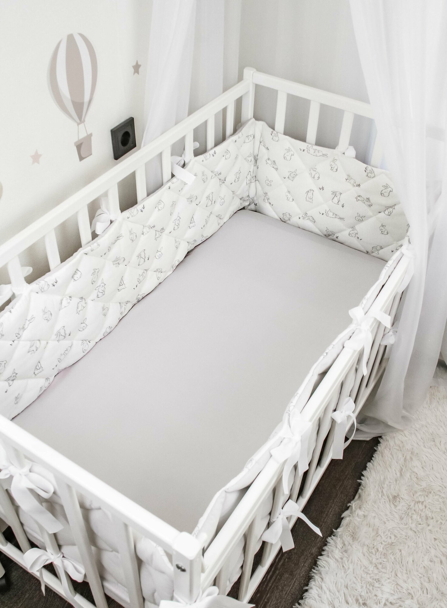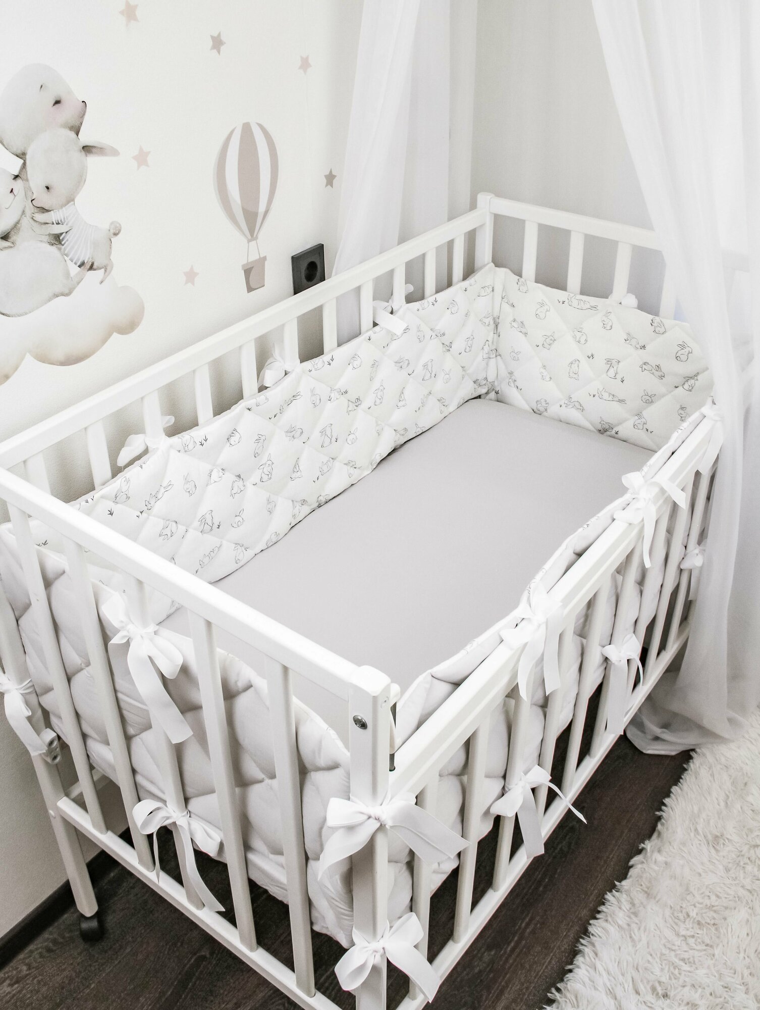 Бортики-заборчики в кроватку для новорожденного "Зайки с молочным": плоские, тонкие, стёганые