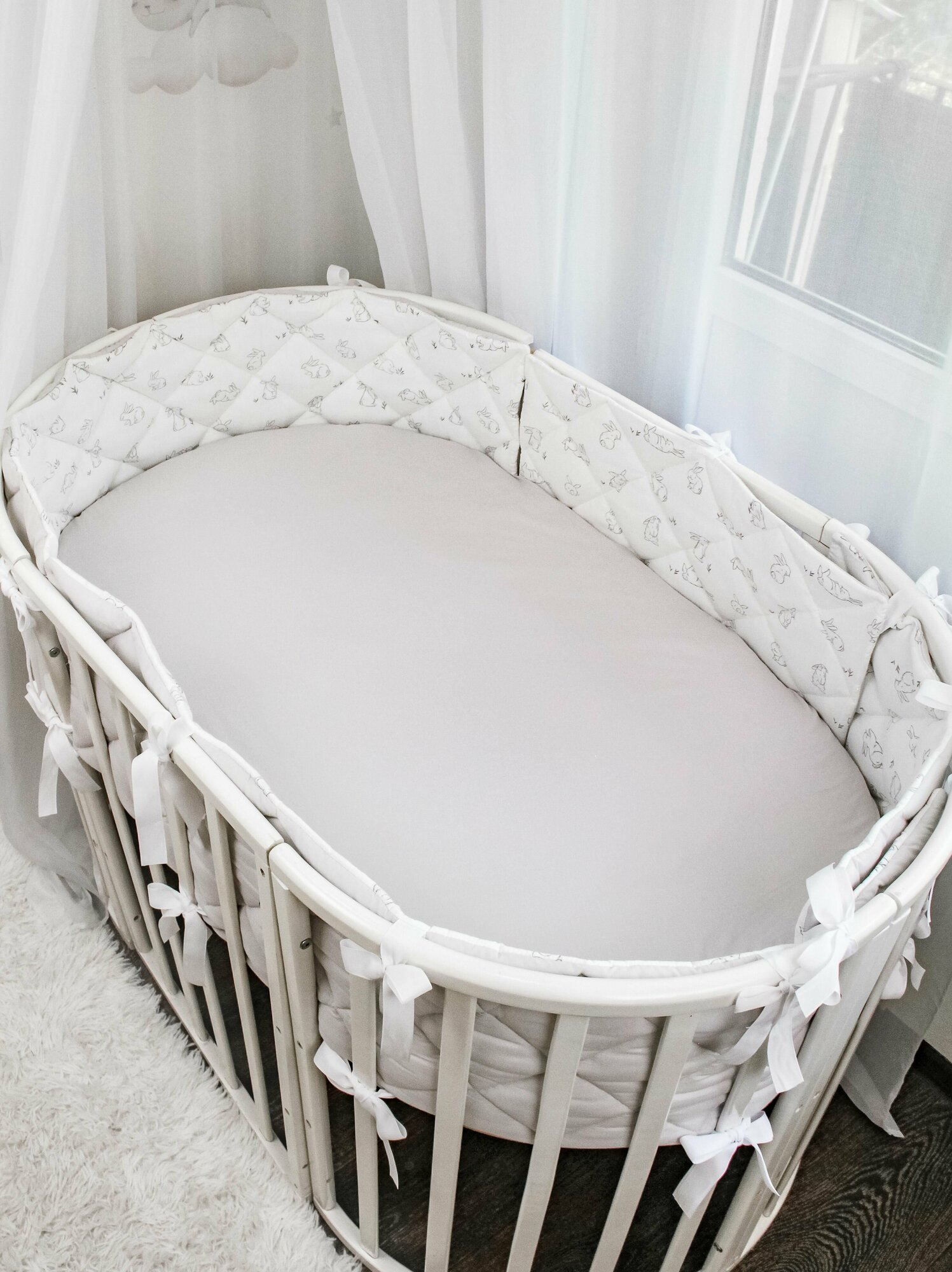 Купить Бортики в кроватку для новорожденного "Крольчата": плоские, тонкие, стёганые