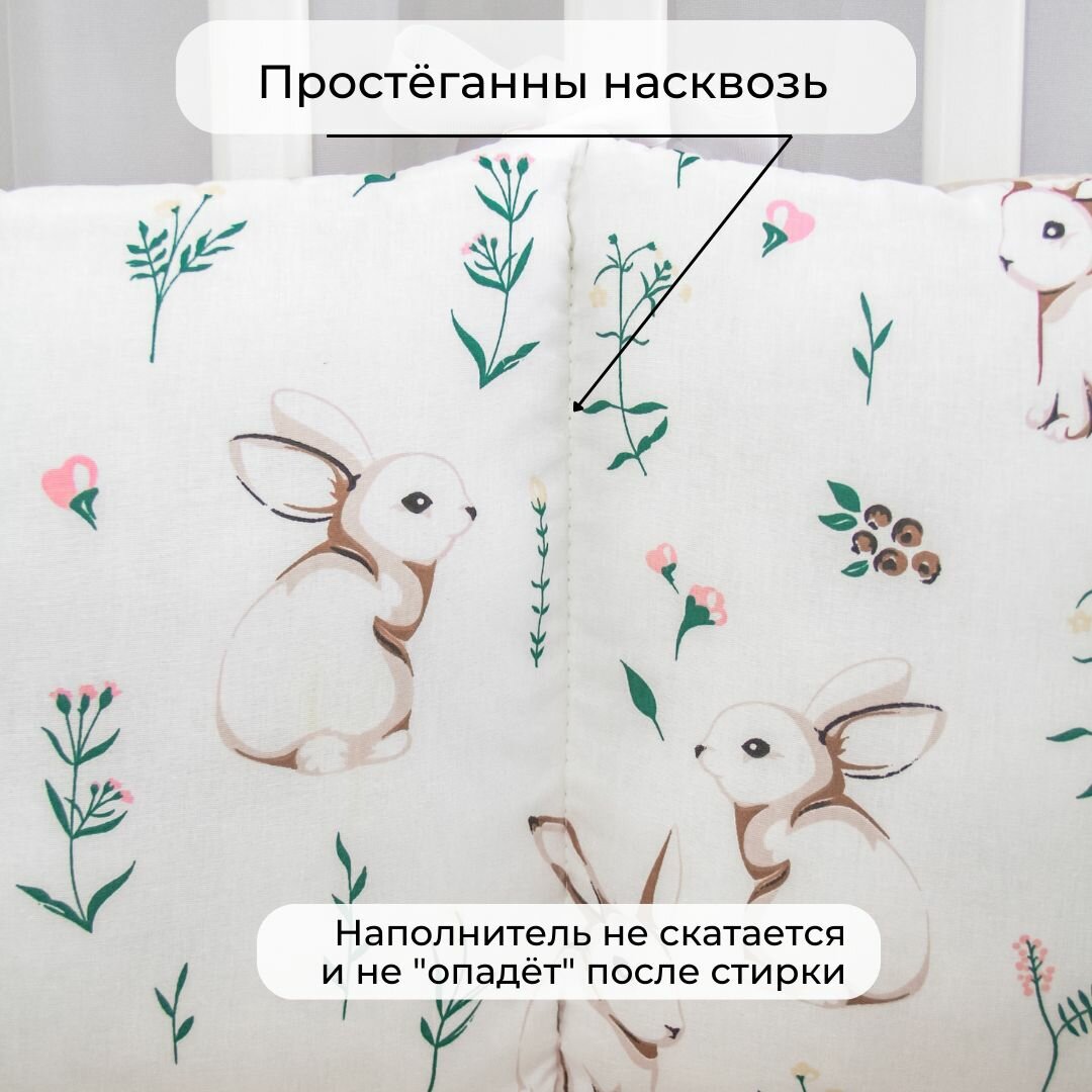 Бортики-заборчики в кроватку для новорожденного "Зайки с молочным": плоские, тонкие, стёганые