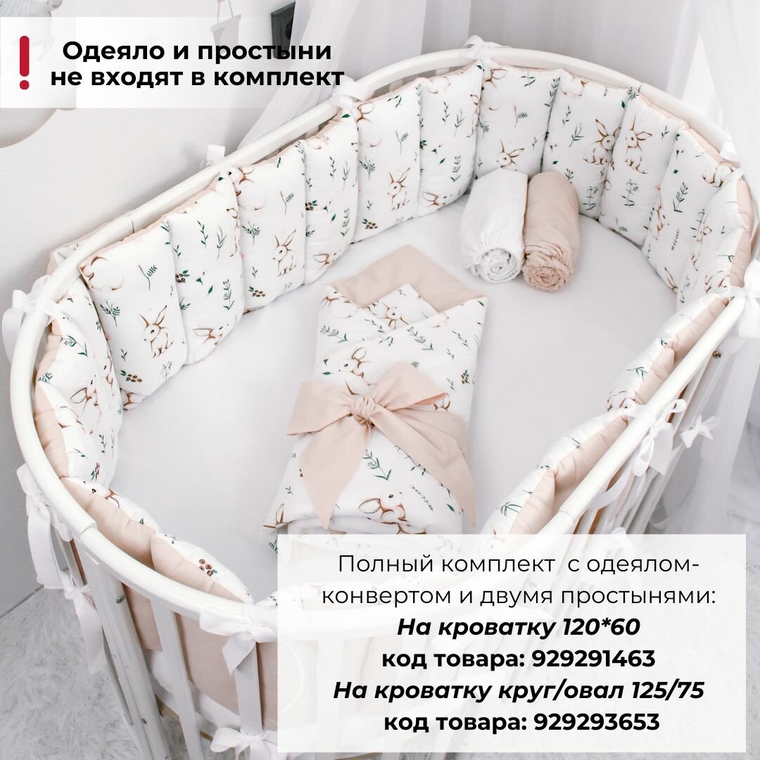 Бортики подушки в кроватку для новорожденных 120*60 с оборотом в цвете "лён"