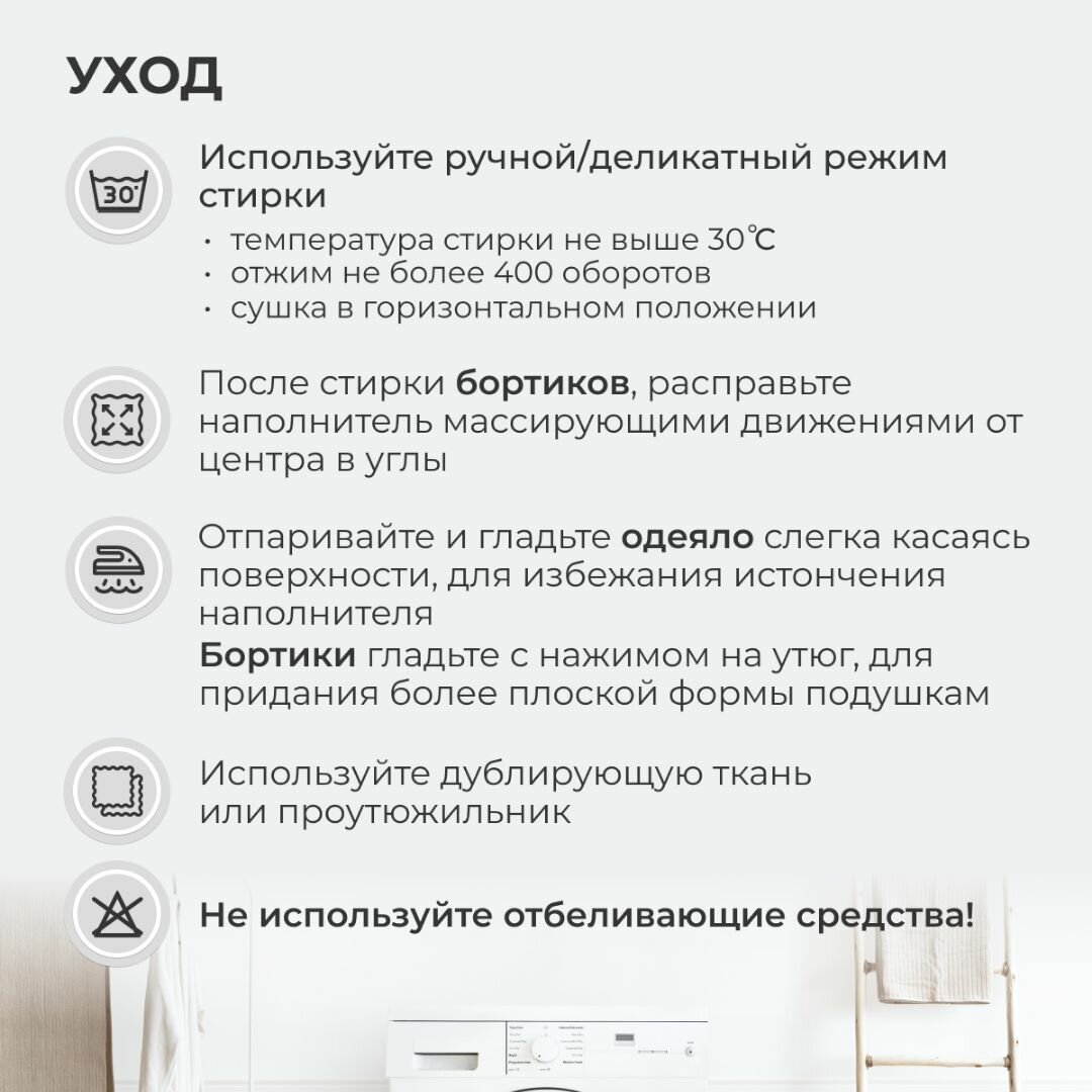 | Комплектация | Бортик 120*30 см - 2 шт.; Бортик 60*30 см - 2 шт.; Правила ухода - 1шт.; Сумка для хранения - 1 шт. |