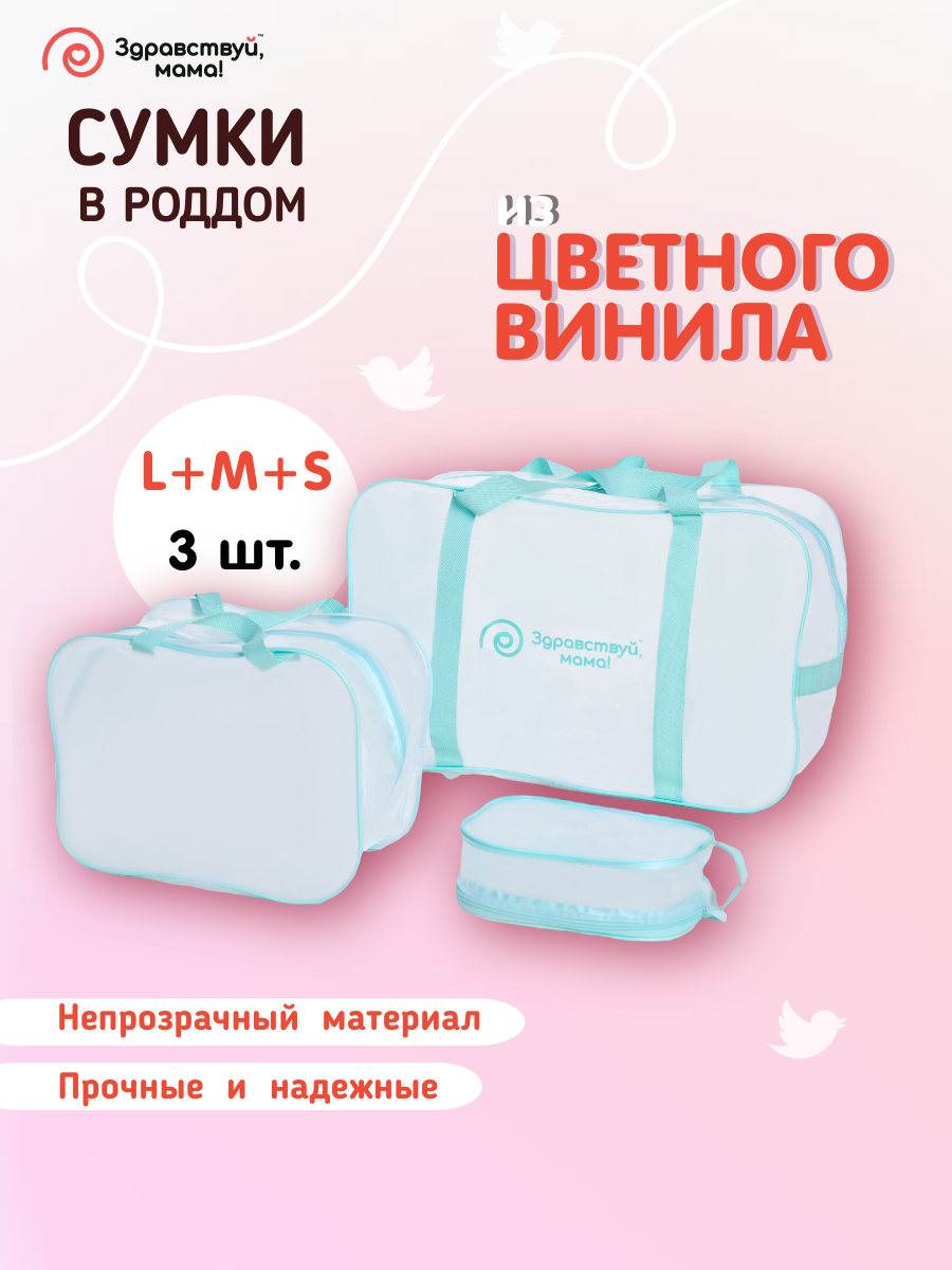 СохранитьСумка в роддом, прозрачная готовая для мамы и малыша "здравствуй, мама!", цвет матовый тиффани, набор из 3 шт. интересное: