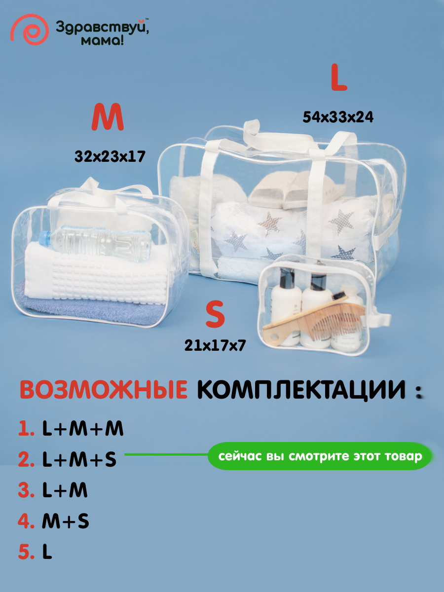 Сумка в роддом, прозрачная для мамы и малыша "здравствуй, мама!" набор из 3 шт.