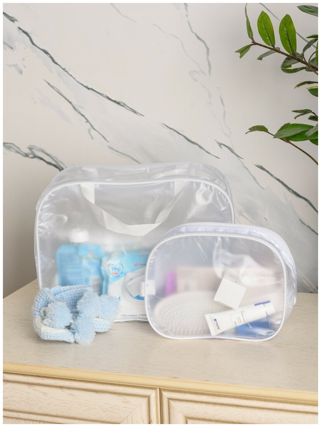 Купить Сумка в роддом, прозрачная готовая для мамы и малыша "здравствуй, мама!", цвет матовый белый, набор из 3 шт.