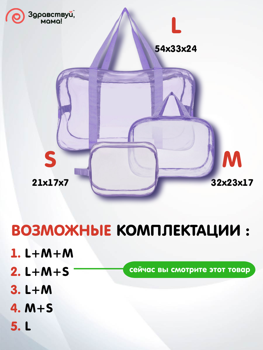 СохранитьСумка в роддом, прозрачная готовая для мамы и малыша "здравствуй, мама!", цвет светло-фиолетовый, набор из 3 шт. интересное: