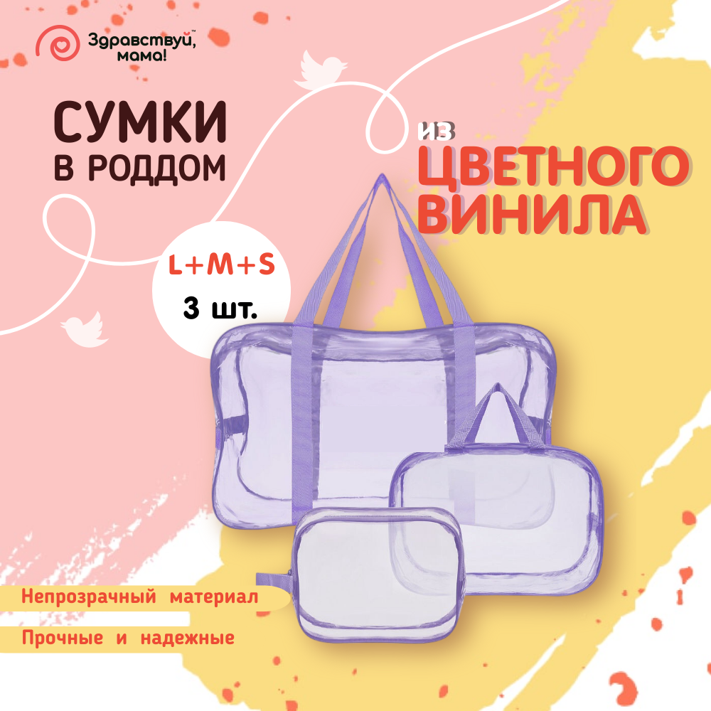 Купить Сумка в роддом, прозрачная готовая для мамы и малыша "здравствуй, мама!", цвет светло-фиолетовый, набор из 3 шт.