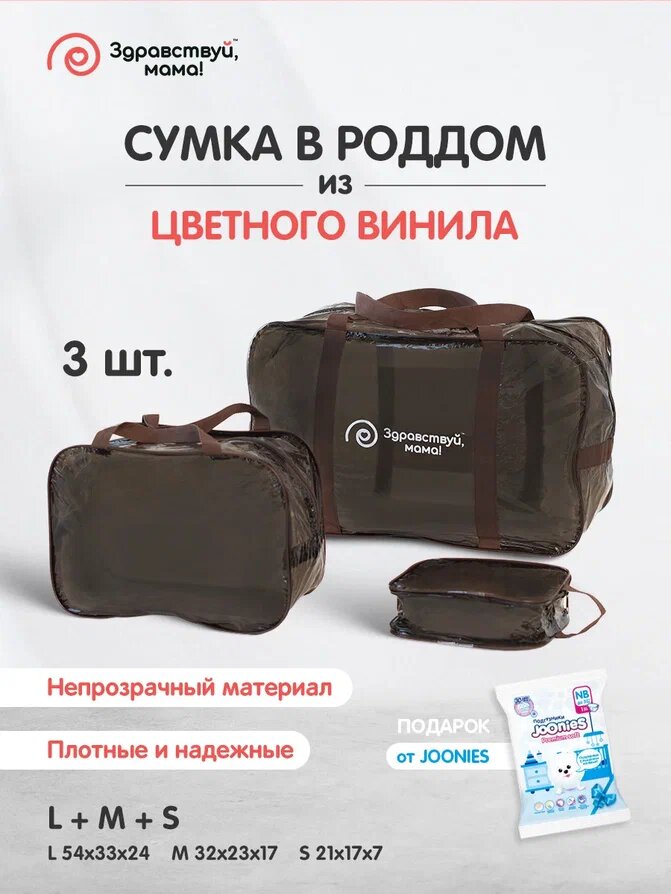 СохранитьСумка в роддом, прозрачная готовая для мамы и малыша "здравствуй, мама!", цвет шоколад, набор из 3 шт. интересное: