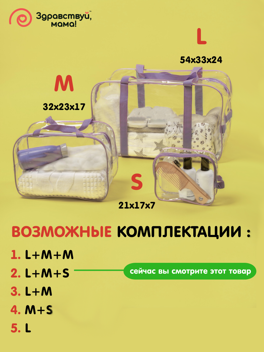 СохранитьСумка в роддом, прозрачная готовая для мамы и малыша "здравствуй, мама!", цвет сиреневый, набор из 3 шт. интересное: