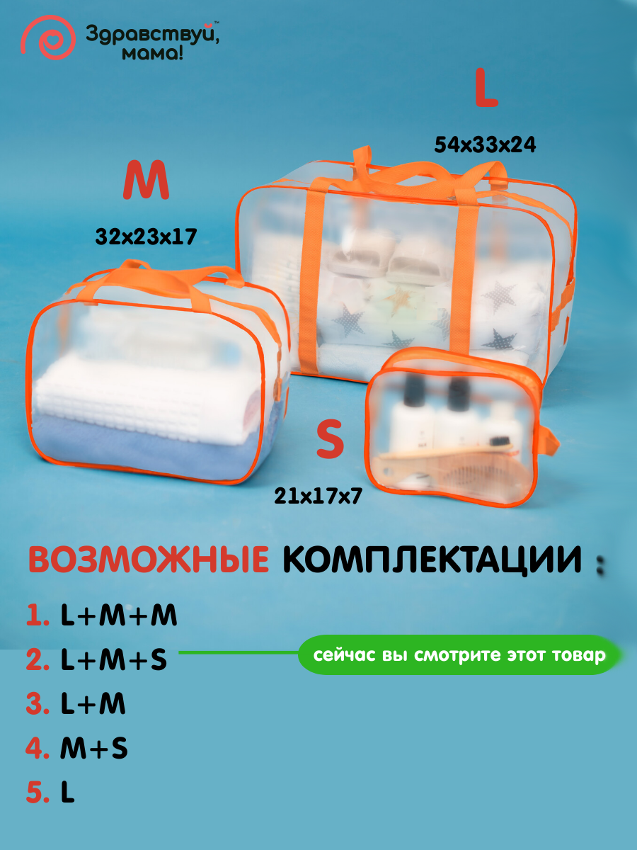 СохранитьСумка в роддом, прозрачная готовая для мамы и малыша "здравствуй, мама!", цвет матовый оранжевый, набор из 3 шт. интересное: