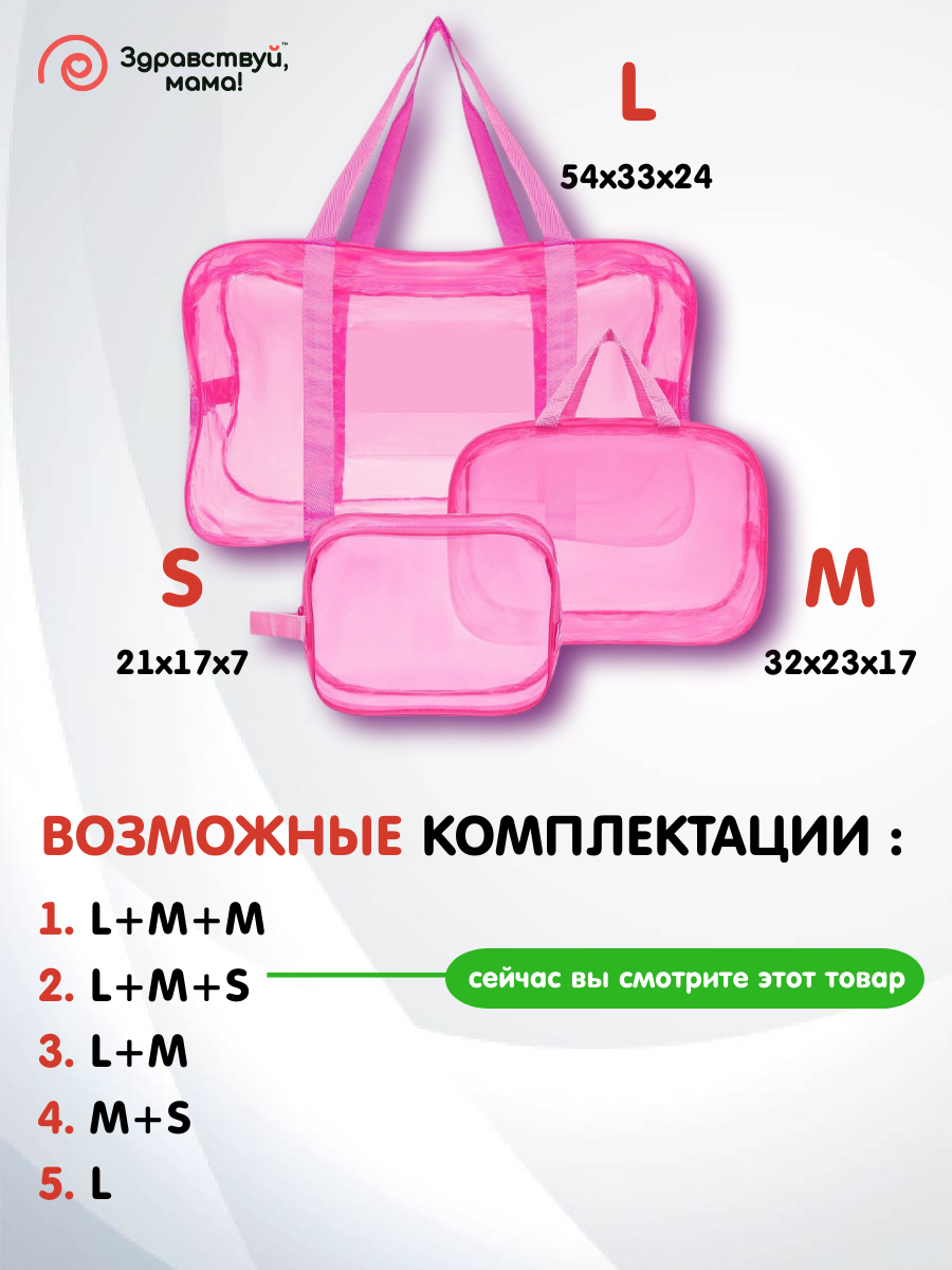 СохранитьСумка в роддом, прозрачная готовая для мамы и малыша "здравствуй, мама!", цвет темно-розовый, набор из 3 шт. интересное: