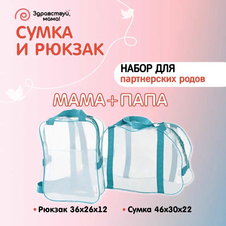 Набор в роддом сумка (46 х 30 х 22) + рюкзак (36 х 26 х 12)"здравствуй мама" интересное: