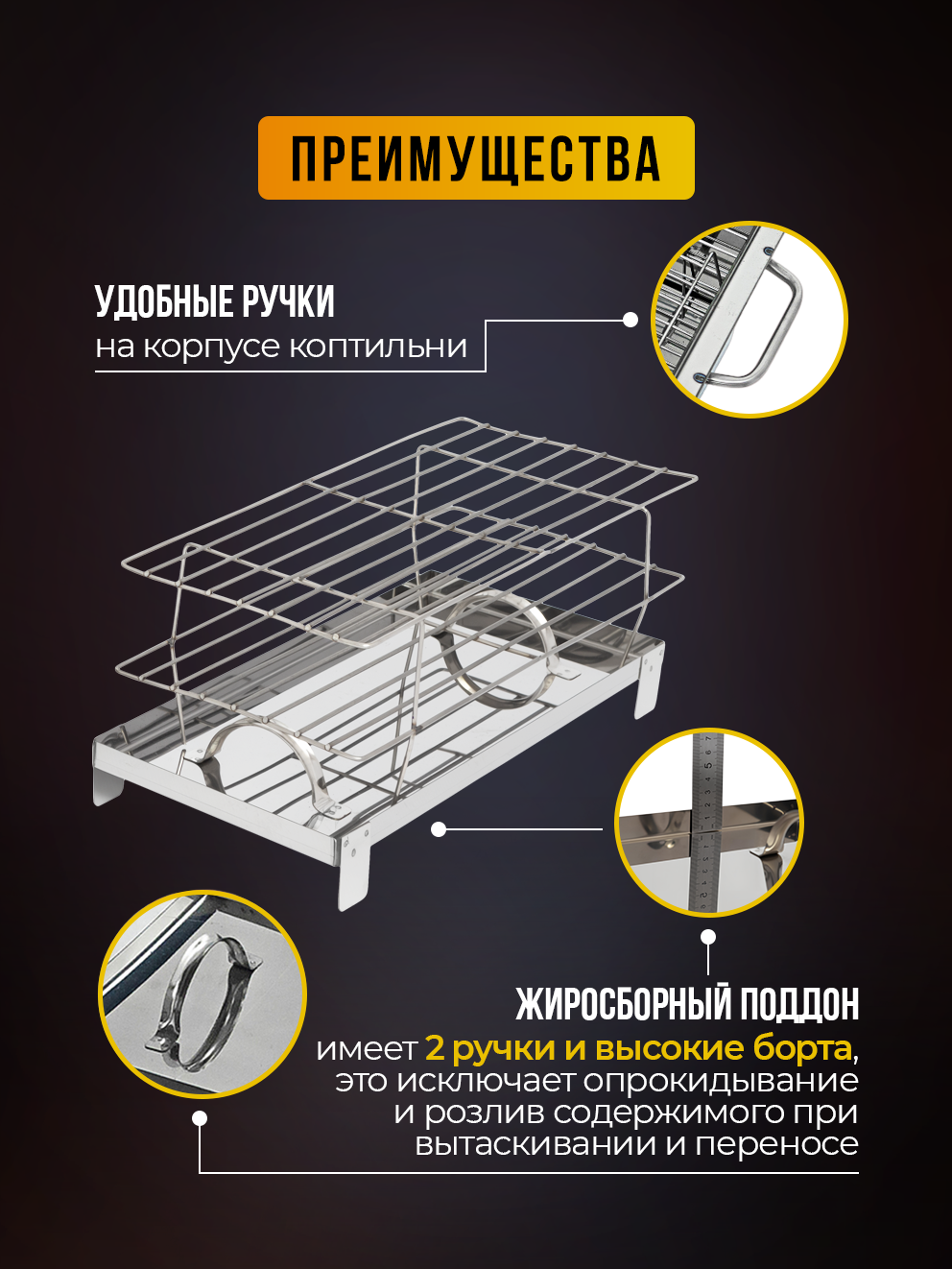 | Особенности | крышка / переносной / поддон для сбора жира / решетка / термометр |