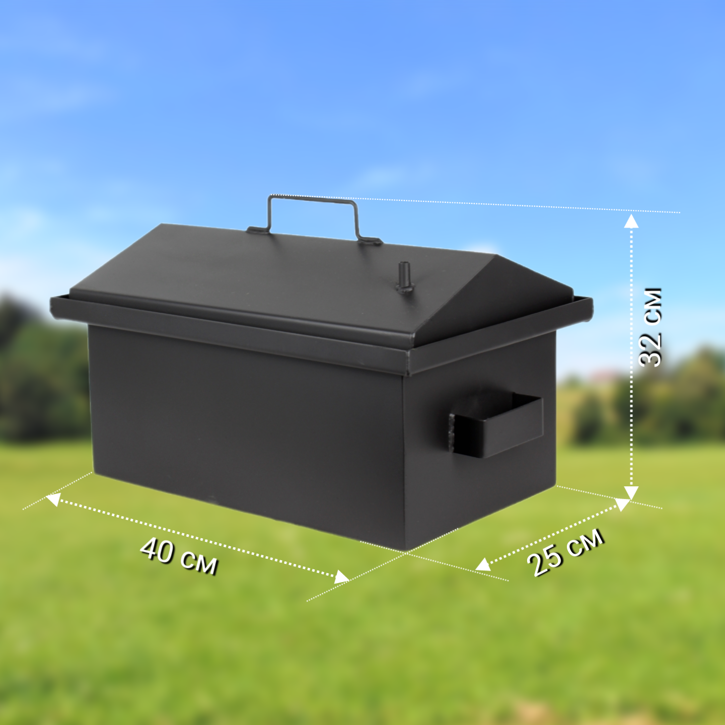 Коптильня горячего копчения с термометром, сталь 2 мм, 50х25х32 см, домашняя, двухъярусная, крышка с гидрозатвором. Горячая Сталь