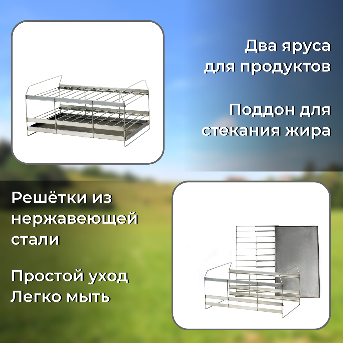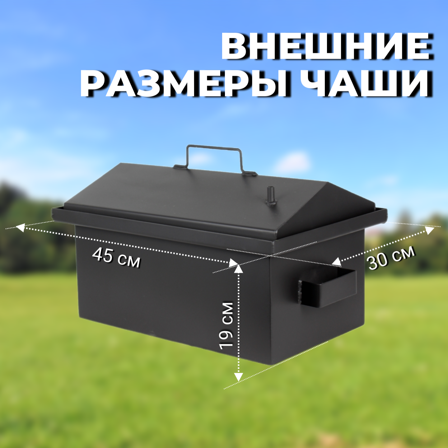 Коптильня Горячая сталь горячего копчения, крышка домиком, с гидрозатвором двухярусная, 40 см сталь 2 мм интересное: