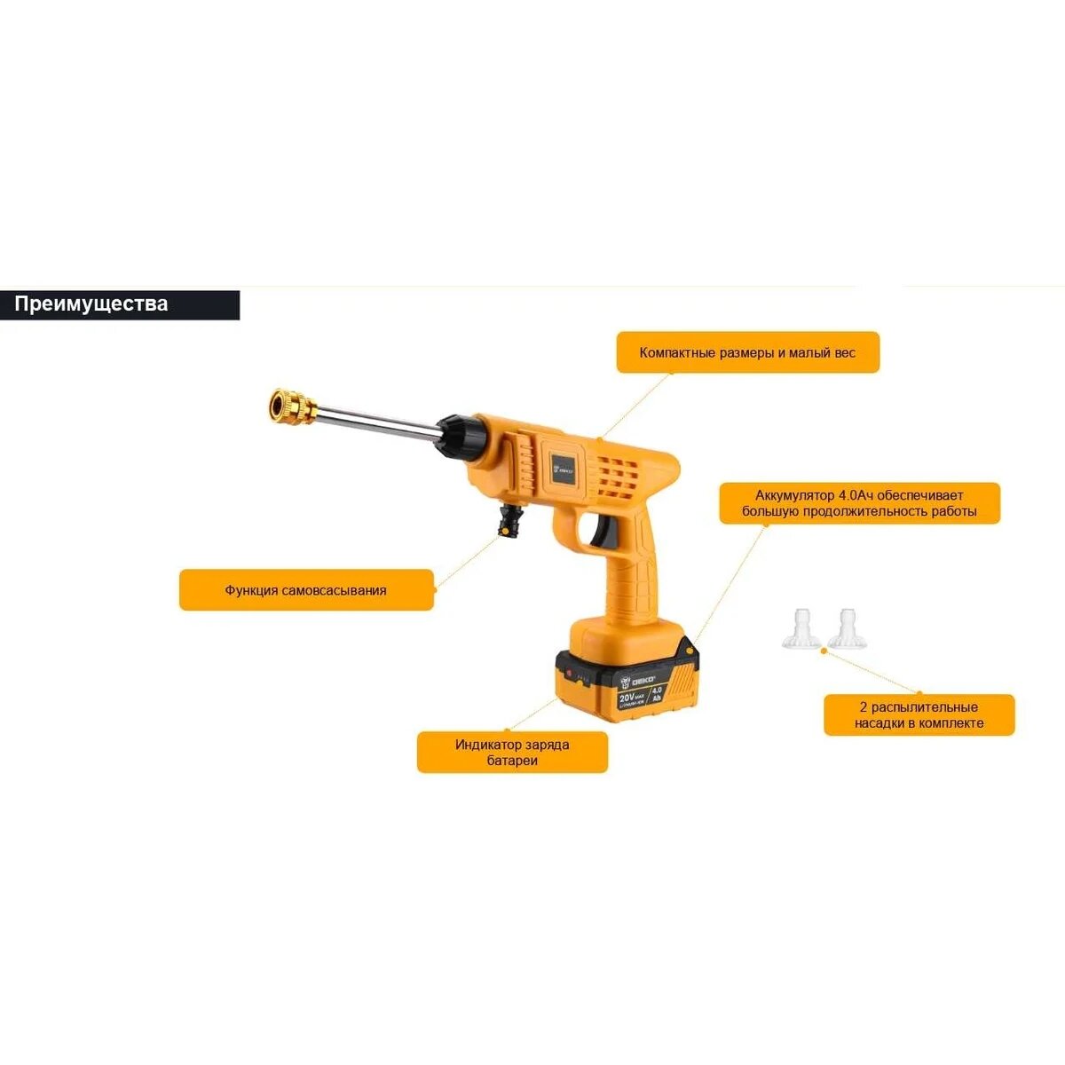 Мойка высокого давления аккумуляторная Deko DKCW25, 30 бар, 2x4.0 Ач, (063-4314), черный