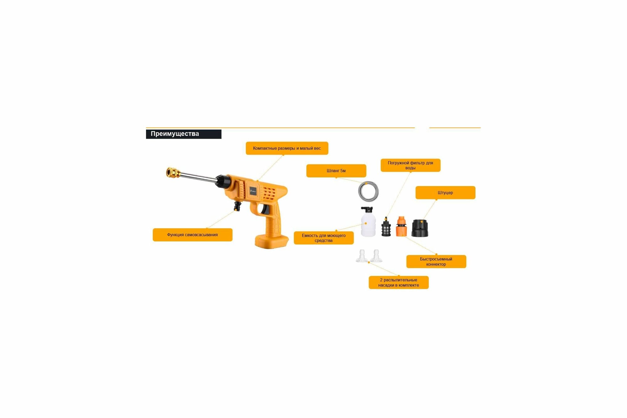 DEKO Мойка высокого давления аккумуляторная DKCW25, 40 бар, без АКБ и зу 063-4491 интересное: