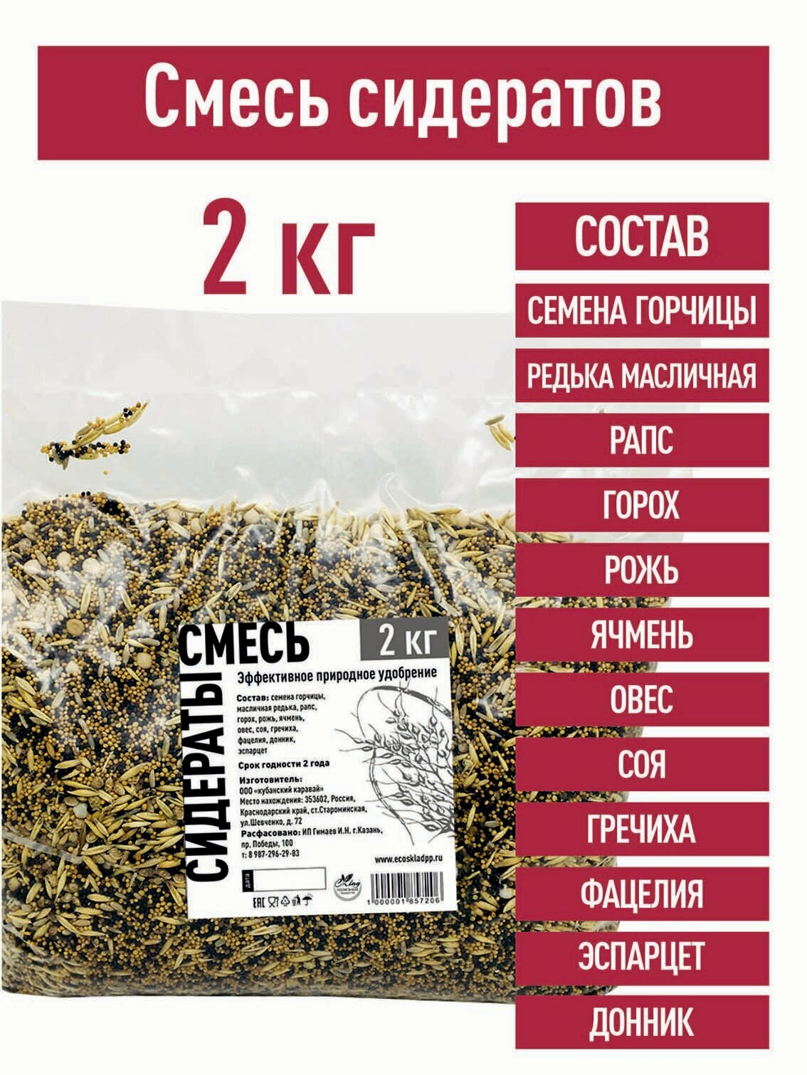 Купить Смесь Сидератов 2 кг горчица редька горох рожь ячмень овес гречиха фацелия донник эспарцет удобрение плодородия почвы