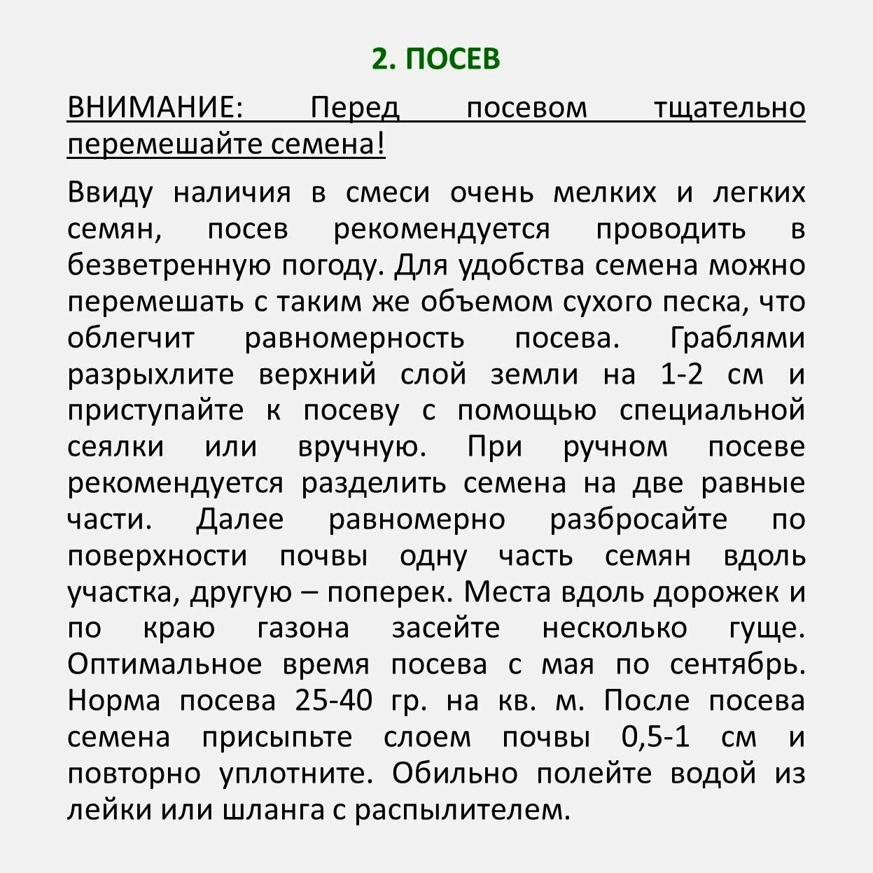 | Норма высева | 30-40 г/м² |