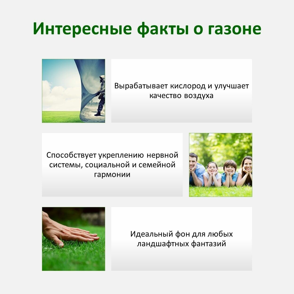 | Назначение газона | декоративный / спортивный / универсальный |