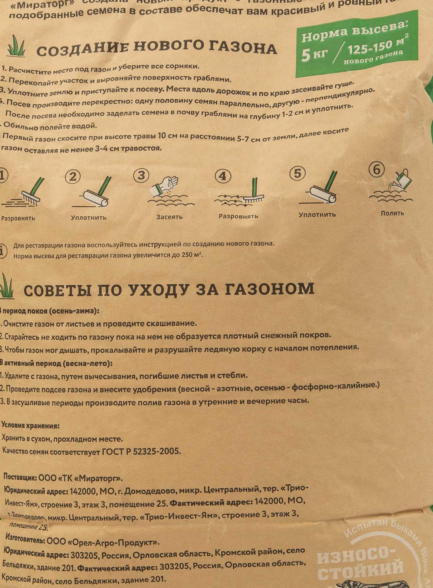 Семена газонной травы Мираторг жаростойкий 5 кг интересное: