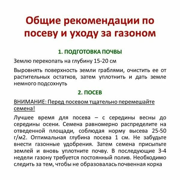 | Назначение газона | декоративный / спортивный / универсальный |