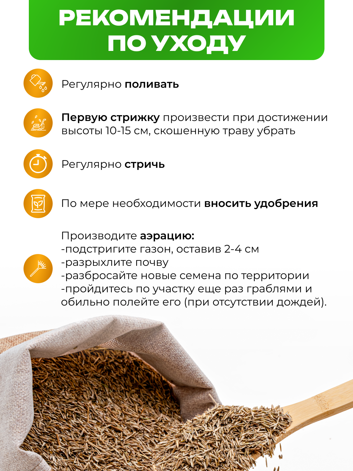 | Трава | ежа / лен / мятлик / овес / овсяница / овсяница красная / овсяница луговая / райграс / райграс многолетний / тимофеевка |