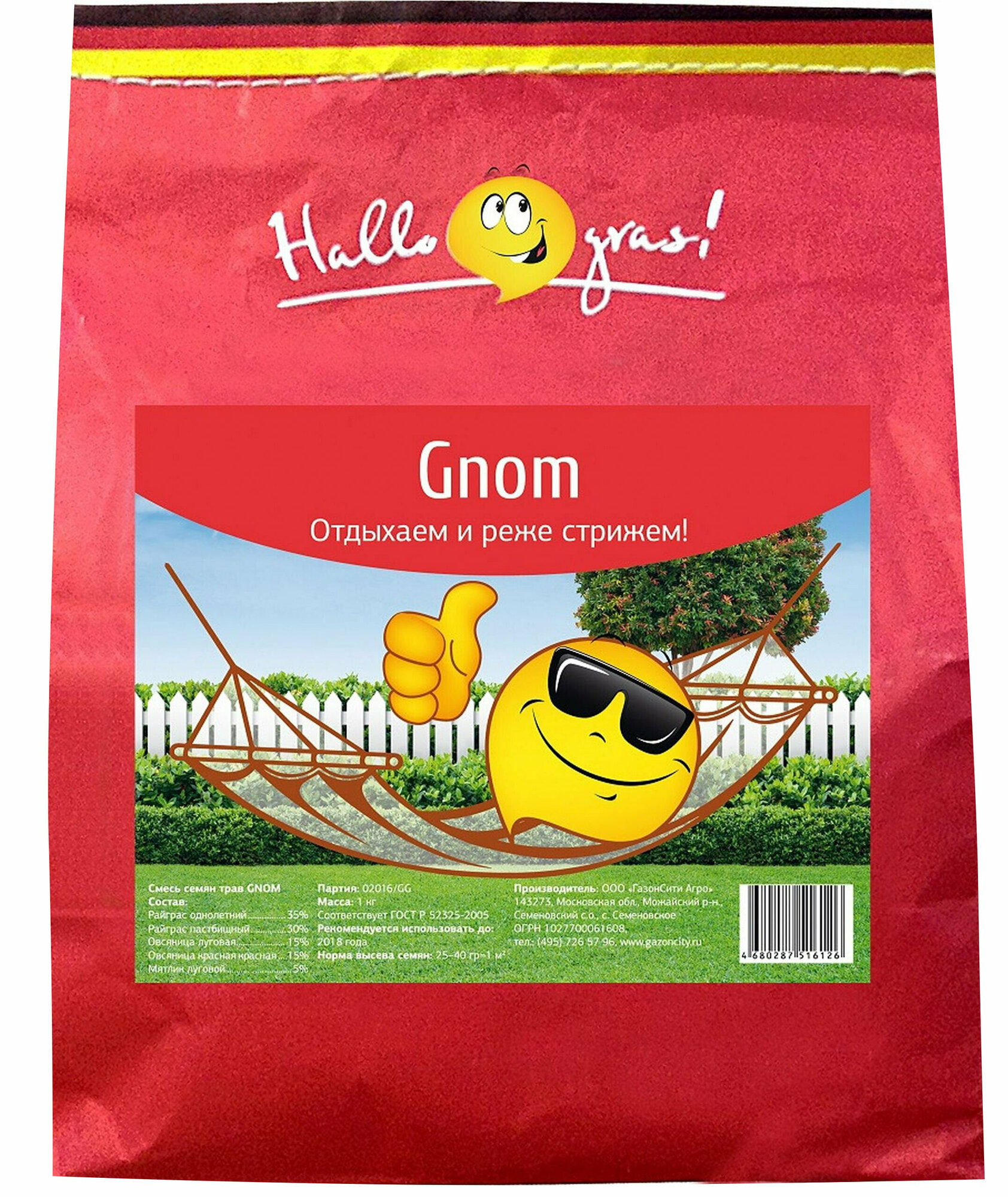 Семена газонной травы Hello grass, Gnom Gras, 1 кг