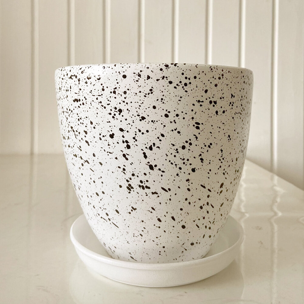 Купить Керамический горшок цветочный ВеЩицы "Терраццо"с подставкой блюдцем / Горшок для цветов с поддоном / Горшок для растений / объем 1,4 л, цвет белый