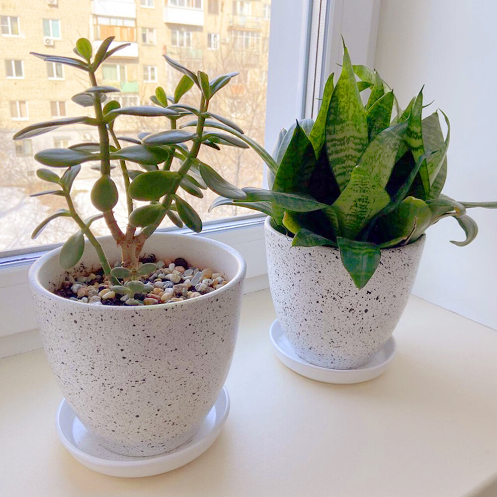 Керамический горшок цветочный ВеЩицы "Терраццо"с подставкой блюдцем / Горшок для цветов с поддоном / Горшок для растений / объем 0,5 л, цвет белый