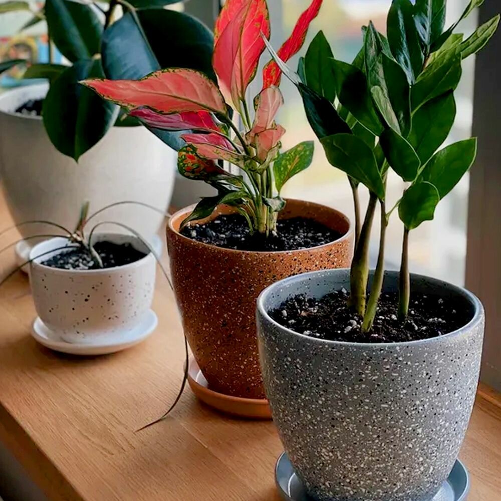 Керамический горшок цветочный ВеЩицы "Терраццо"с подставкой блюдцем / Горшок для цветов с поддоном / Горшок для растений / объем 1,4 л, цвет серый