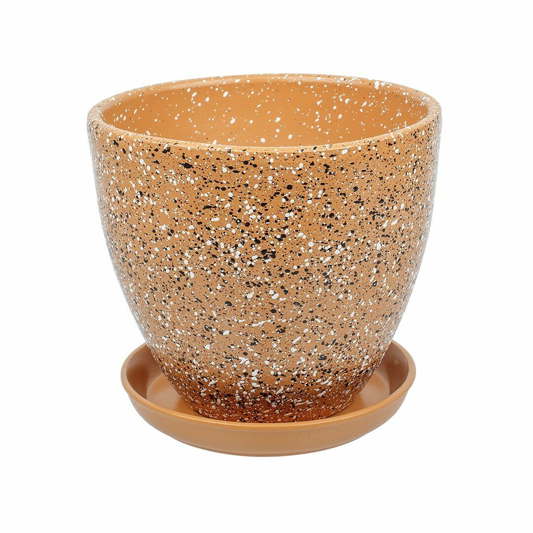 Горшок керамический Вещицы Терраццо с подставкой, 1,4 л, терракотовый