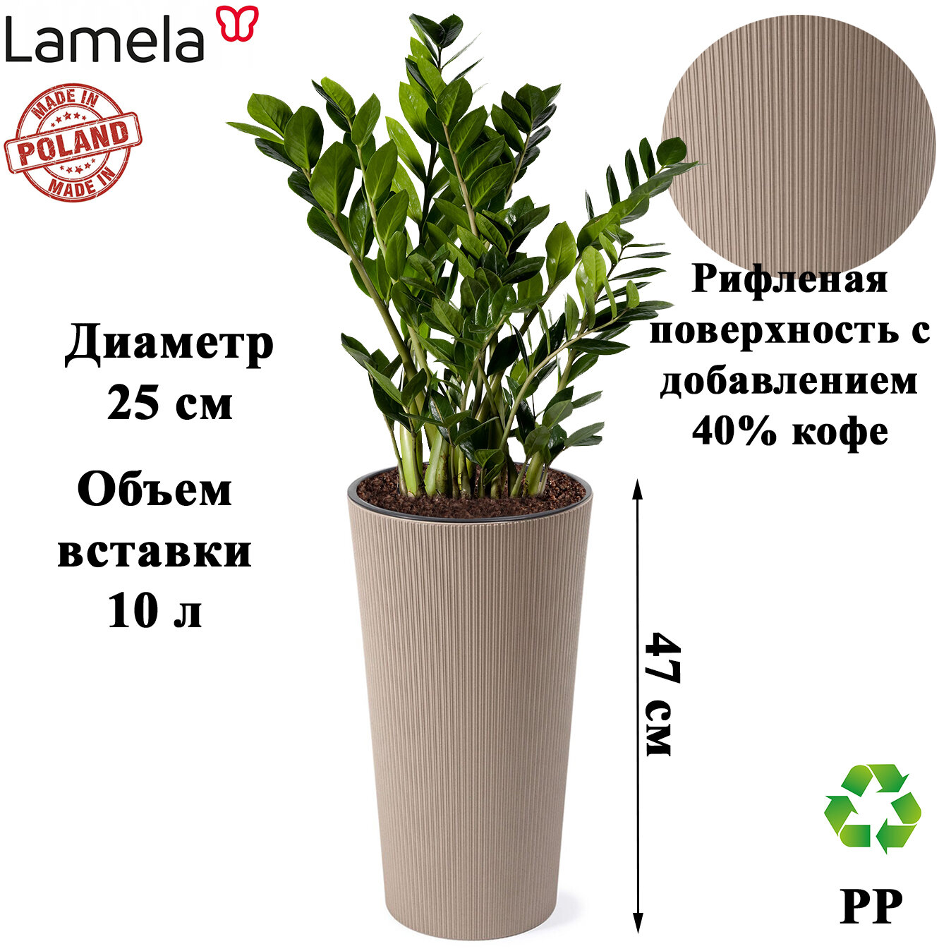 Кашпо для цветов напольное высокое, для растений - замиокулькас, фикус, пальма.