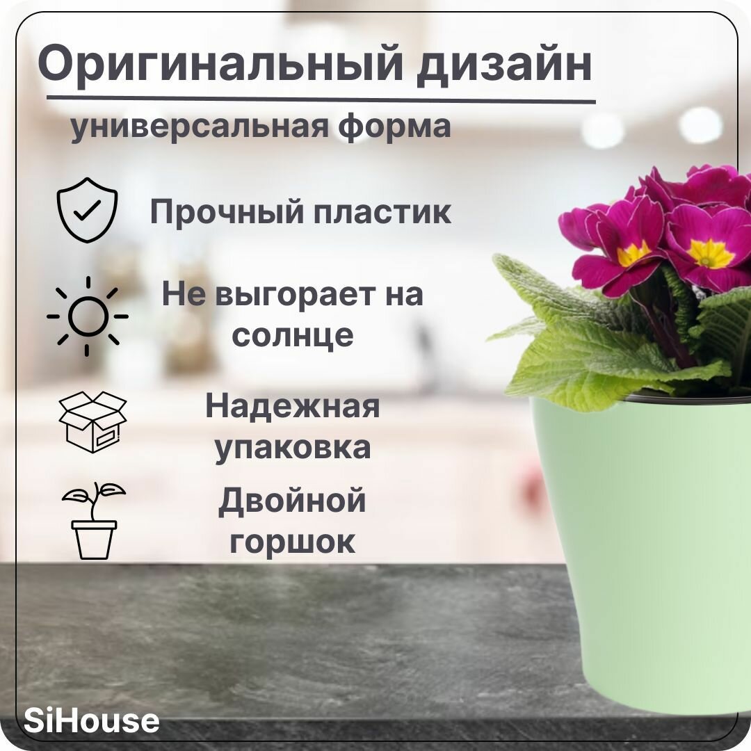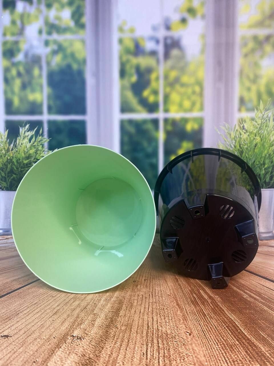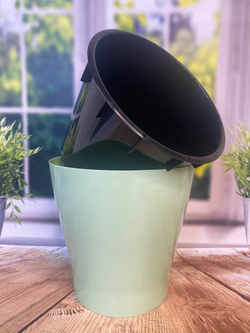 Горшок цветочный Альтернатива Лея двойной с автополивом 3.6 л, горшок для цветов, кашпо для цветов, пластиковый горшок для цветов, светло-зеленый