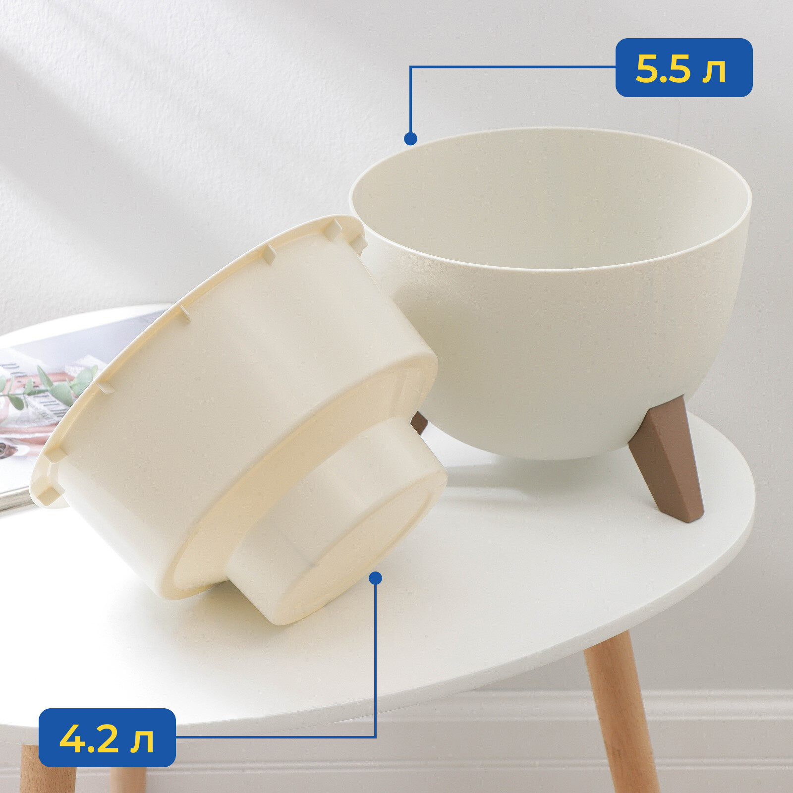 Купить Кашпо на ножках «Флориан», 5,5 л (объём внутренней вставки 4,2 л), d=25 см, h=18,5 см, цвет белый ротанг