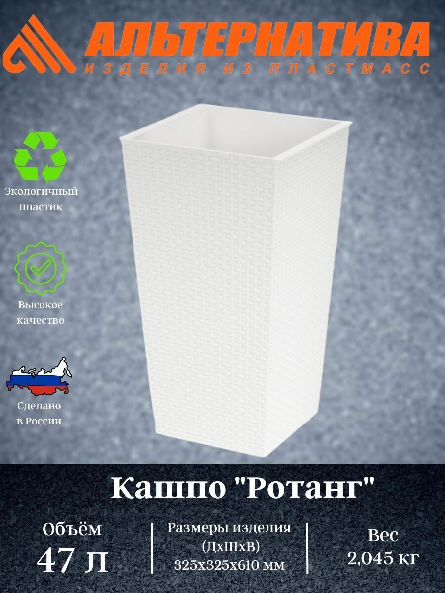 Кашпо "Альтернатива" Ротанг 47 литров Белый