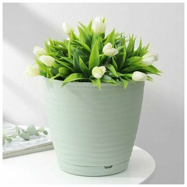 Горшок для цветов Saffron D146мм, 1,5л с поддоном (светло-зеленый)