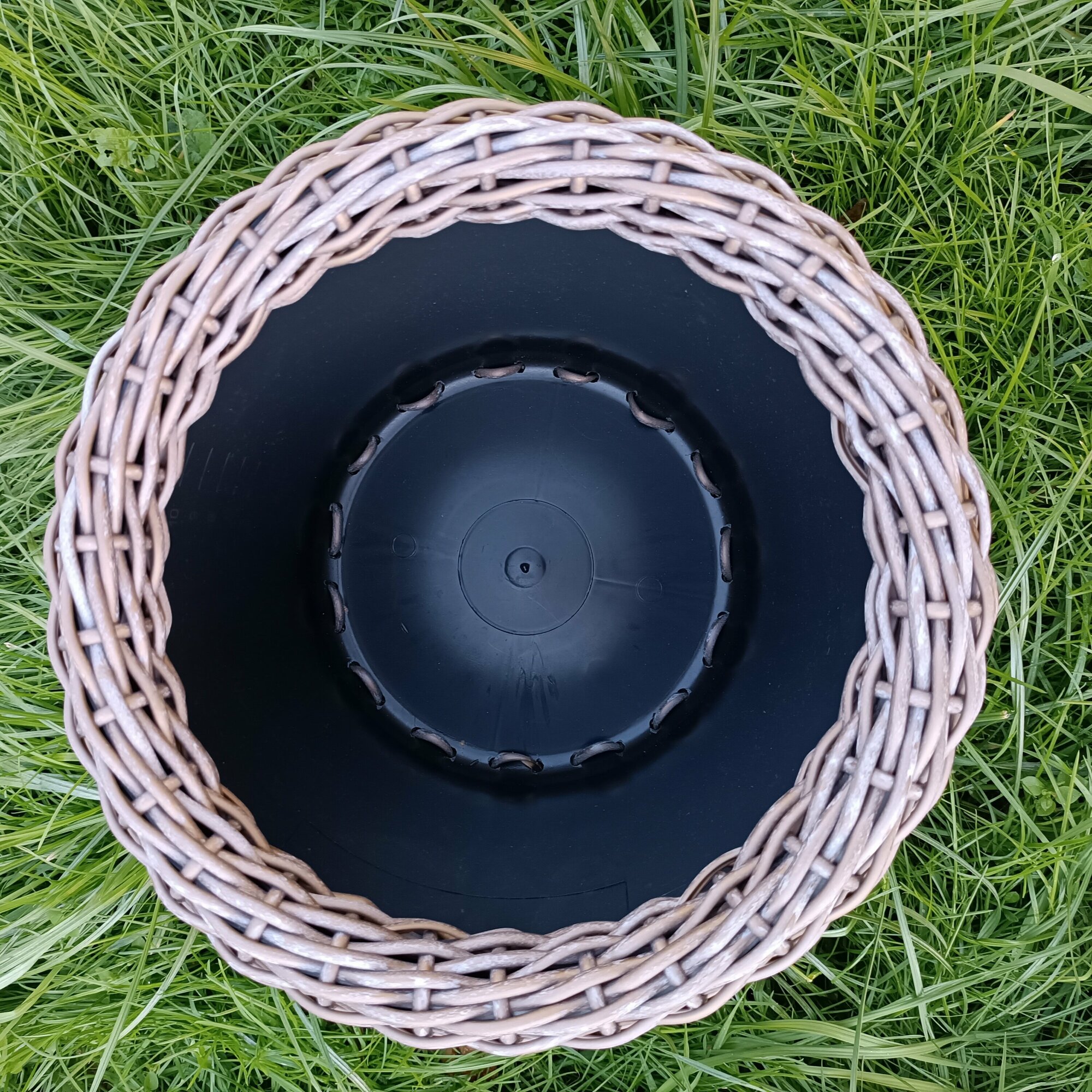 Кашпо для цветов уличное плетеное, цвет тёмно-серый, размер 34 см х 23 см