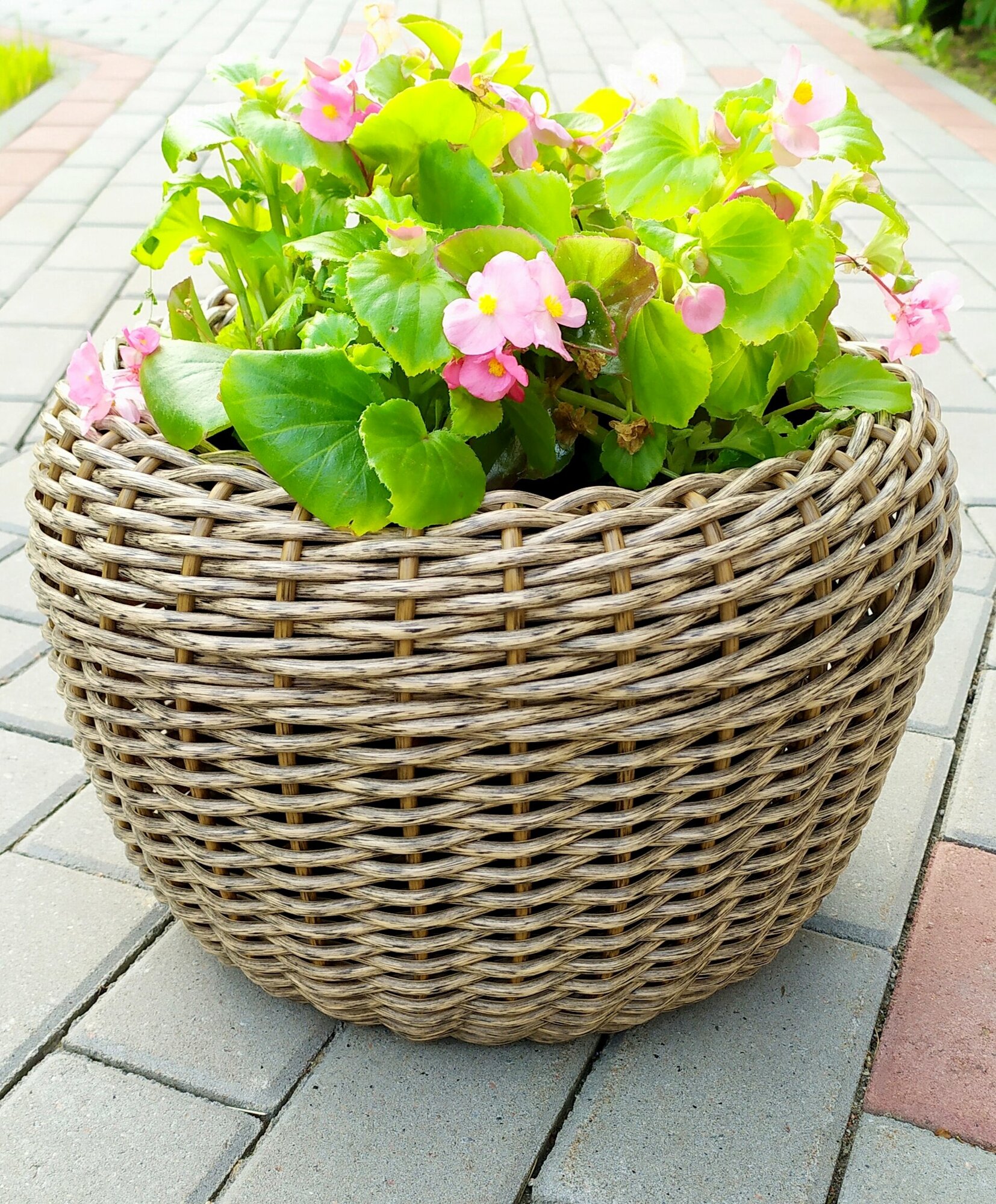 Кашпо для цветов уличное плетеное, цвет тёмно-серый, размер 34 см х 23 см