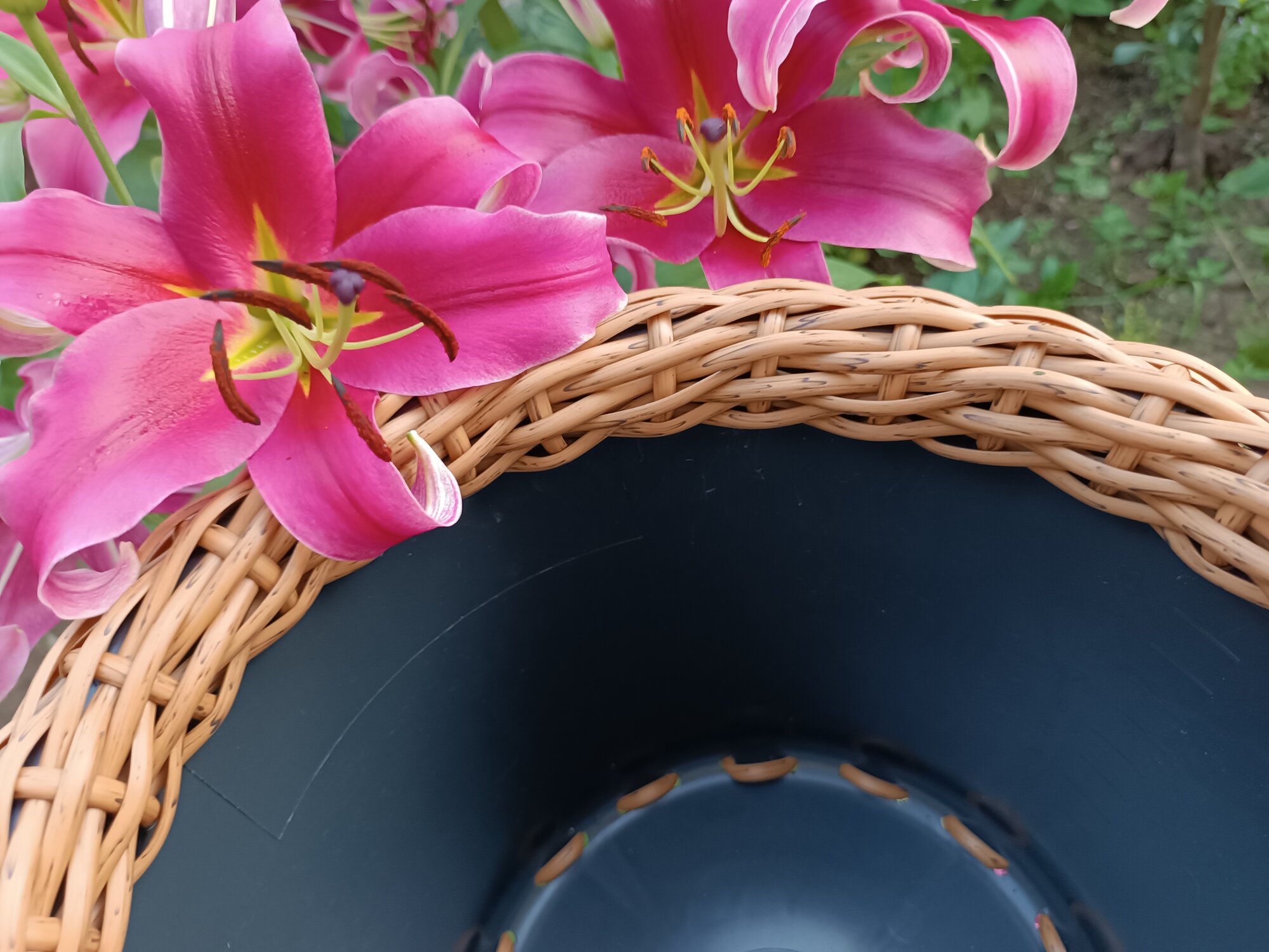 Кашпо для цветов уличное плетеное, цвет тёмно-серый, размер 34 см х 23 см