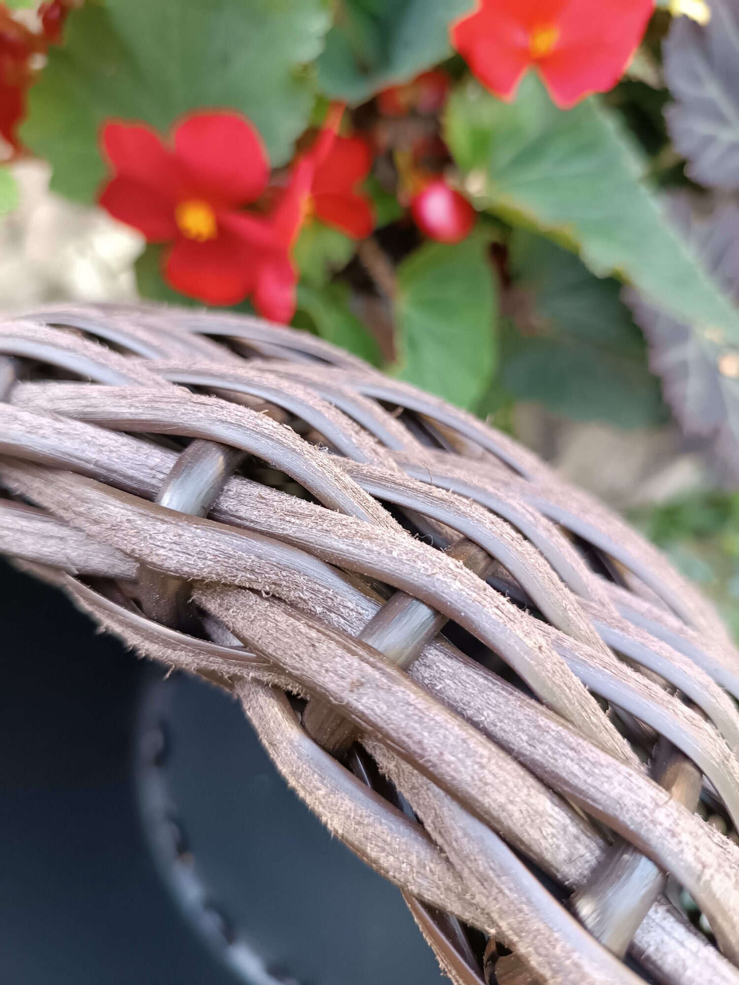 Кашпо для цветов уличное плетеное, цвет тёмно-серый, размер 34 см х 23 см