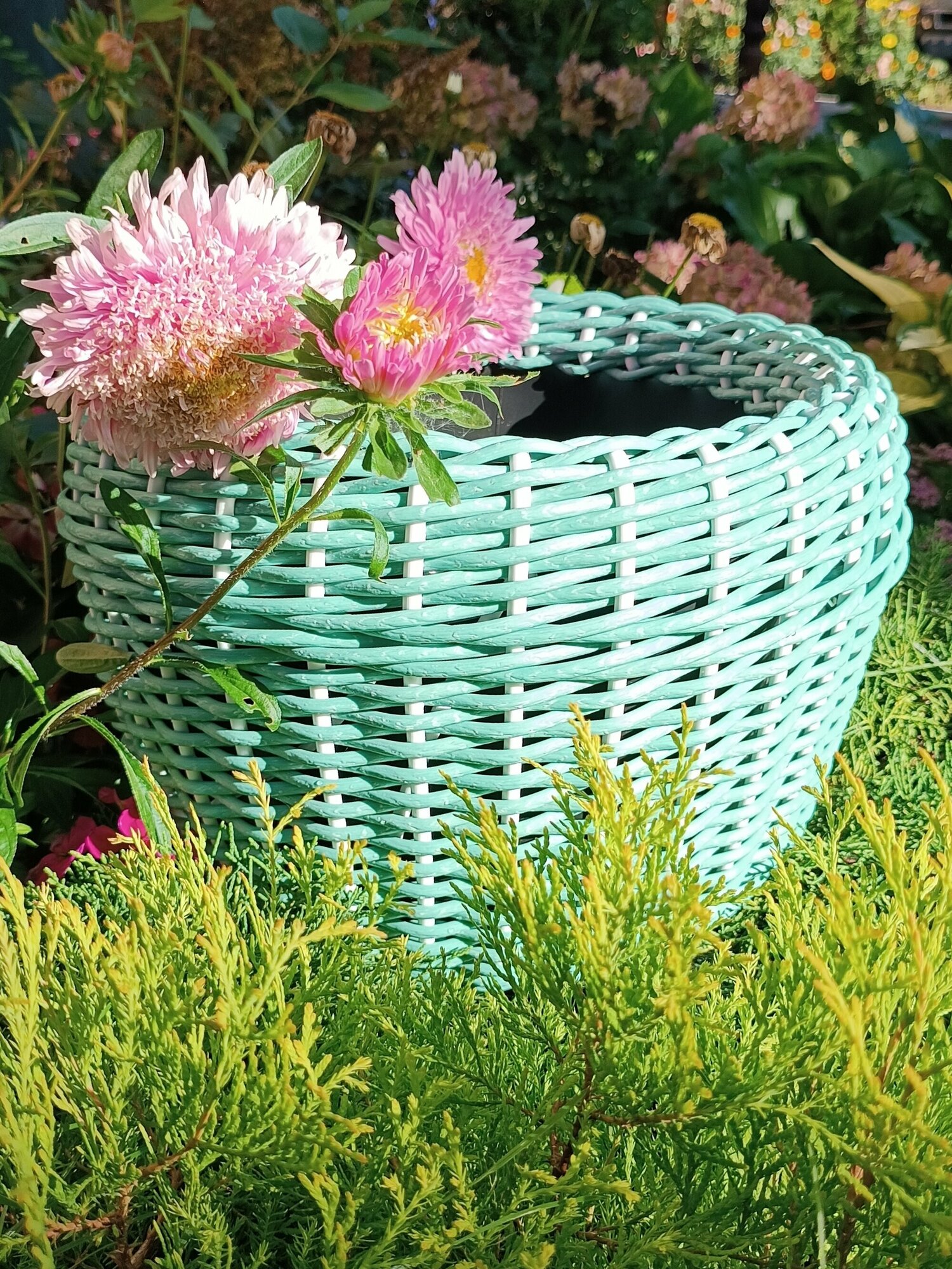 Ниже Вы можете прочитать отзывы на Уличное плетеное кашпо для цветов, размер 23х34см, объем 12л, цвет мятный, ознакомится с подробными характеристиками, посмотреть интересные обзоры и фотографии на Уличное плетеное кашпо для цветов, размер 23х34см, объем 12л, цвет мятный.