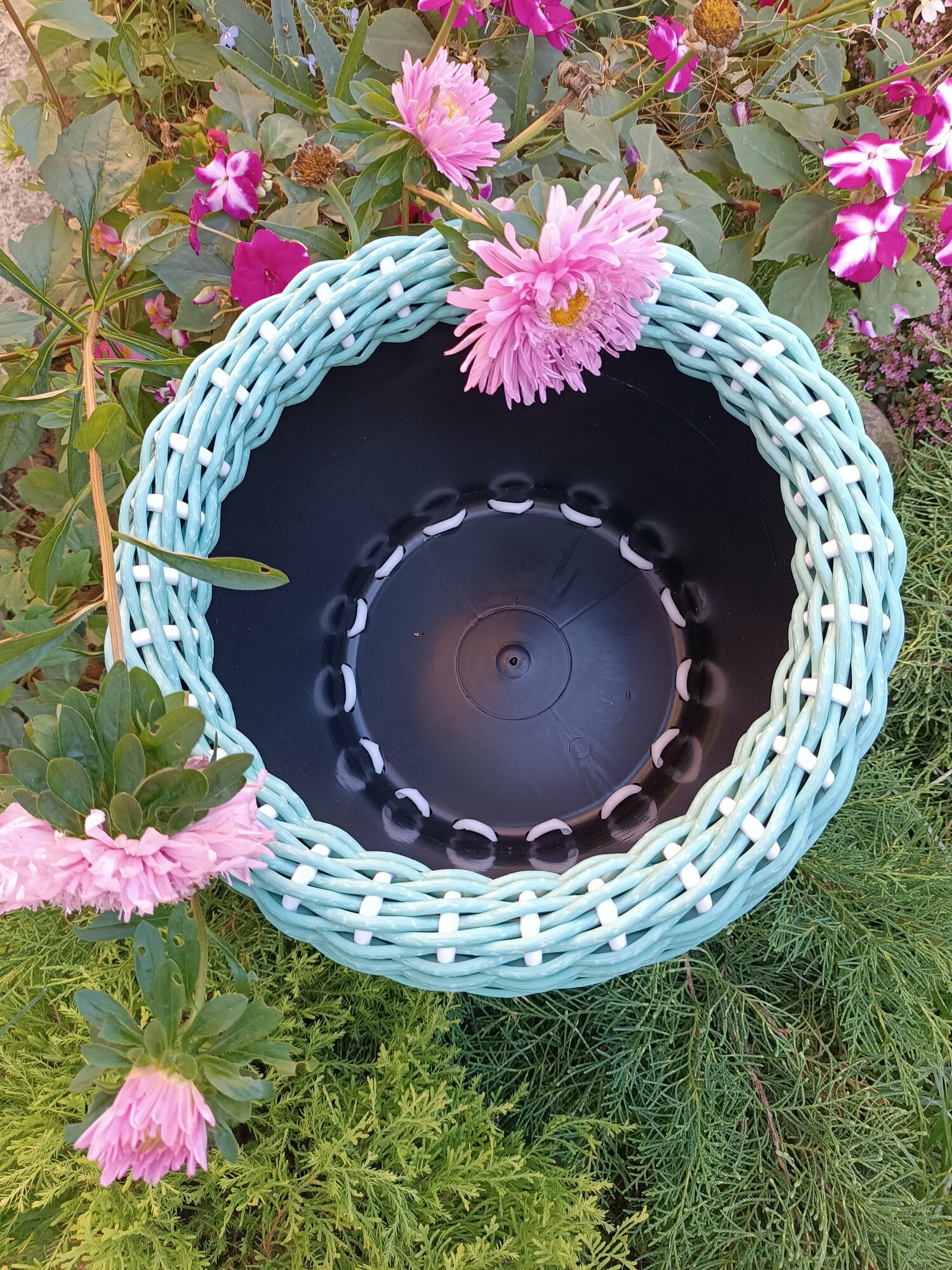 СохранитьУличное плетеное кашпо для цветов, размер 23х34см, объем 12л, цвет мятный интересное: