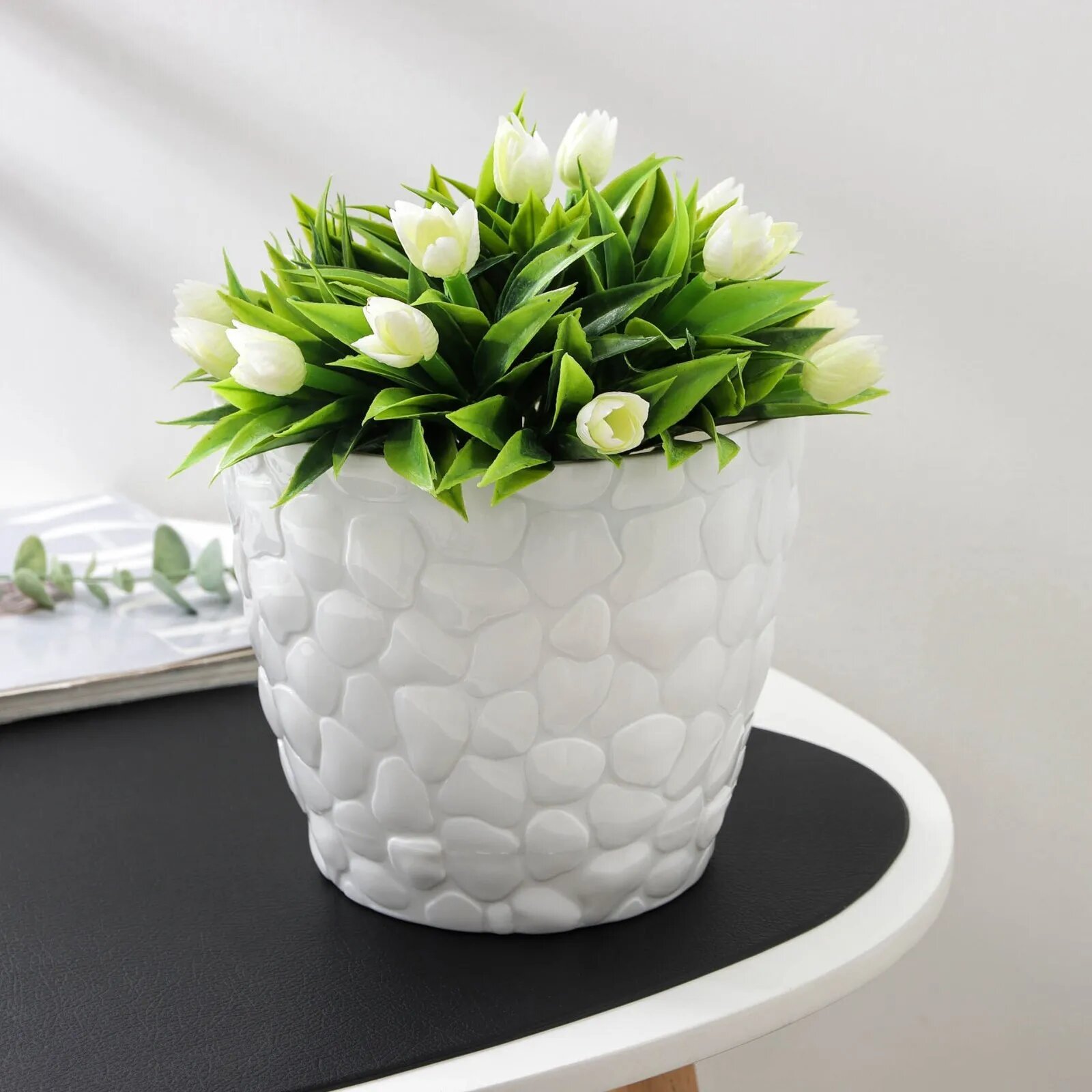 Горшок с поддоном «Камни», 8 л, цвет белый