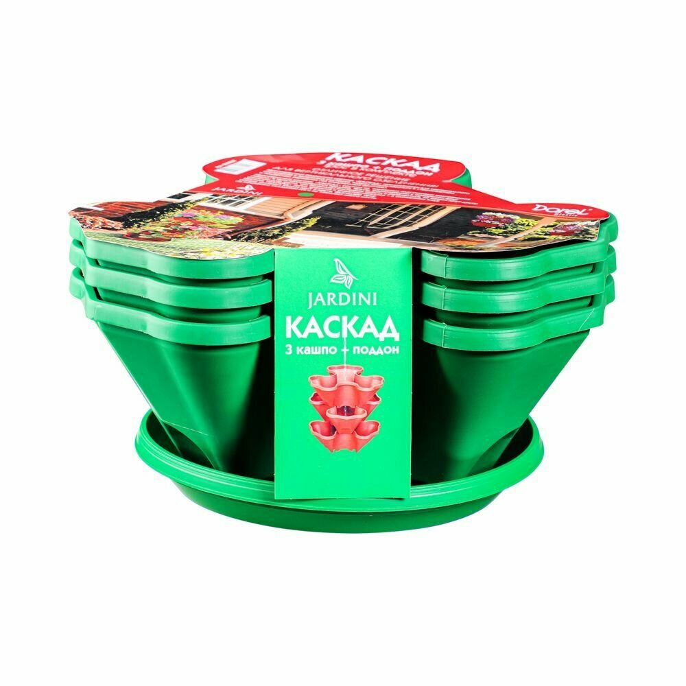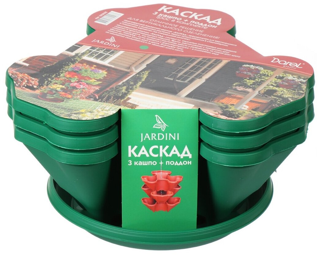 Кашпо пластиковое Darel Каскад, 3 шт, темно-зеленое, с поддоном