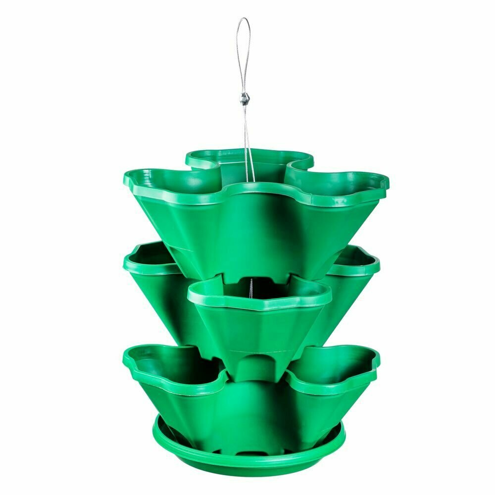 Кашпо КАСКАД 3 поддона подвесной, прекрасный подарок садоводам , любителям фиалок , цвет темно-зеленый 505032