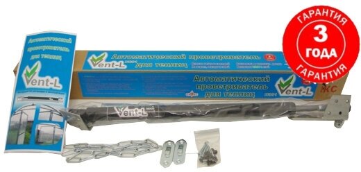 | Дополнительная информация | Усиленный автоматический доводчик проветриватель дверей и форточек для теплицы Vent L 01 с усилием до 100 кг и защитой от сильных порывов ветра и подробная инструкция по сборке и эксплуатации. Внимание! В России появились дешёвые некачественные тепличные доводчики под маркой Vent l. Мы продаём автопроветриватели с длительной гарантией напрямую от производителя - завода Oniks. Опасайтесь поддельных термоприводов Vent l, предлагаемых Вам по низким ценам! |