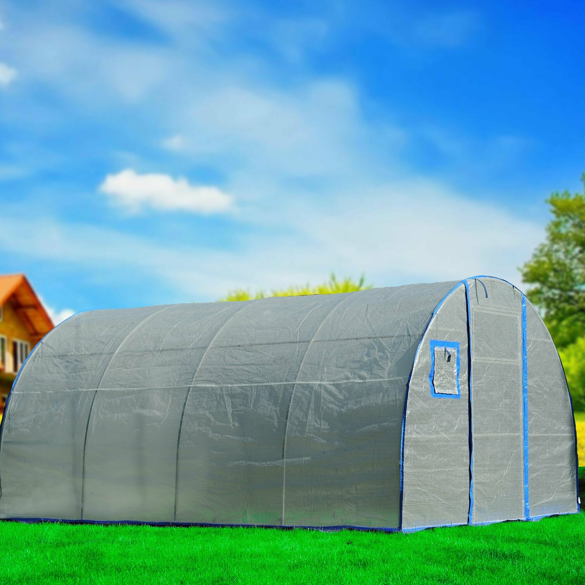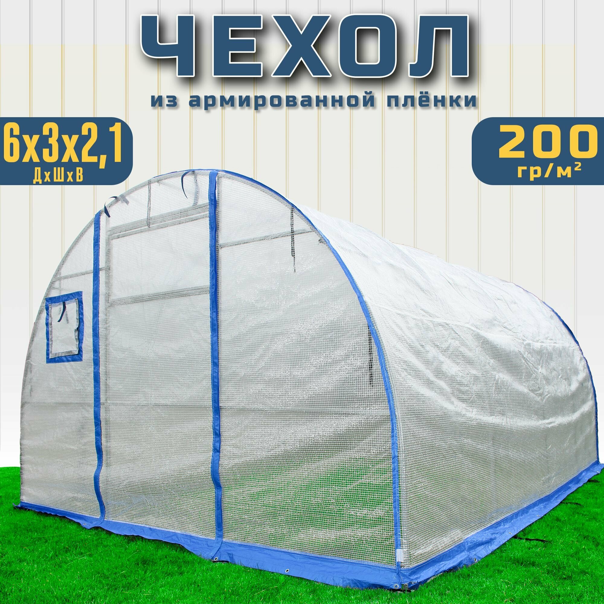 Купить Чехол на теплицу из армированной пленки 6х3м с УФ-защитой 200 г/кв.м., (2 двери, 2 форточки)