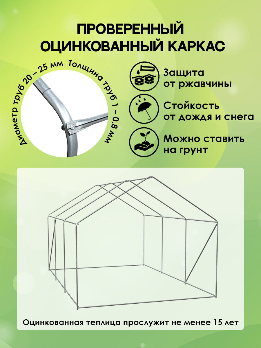 Теплица металлическая каркас 6,1м для чехла из спанбонда