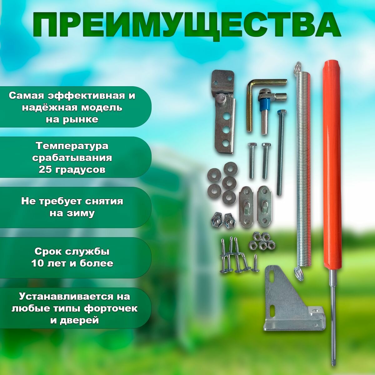 Купить Термопривод Русич. Автомат для проветривания теплиц и парников. Автоматический открыватель на дверь или форточку